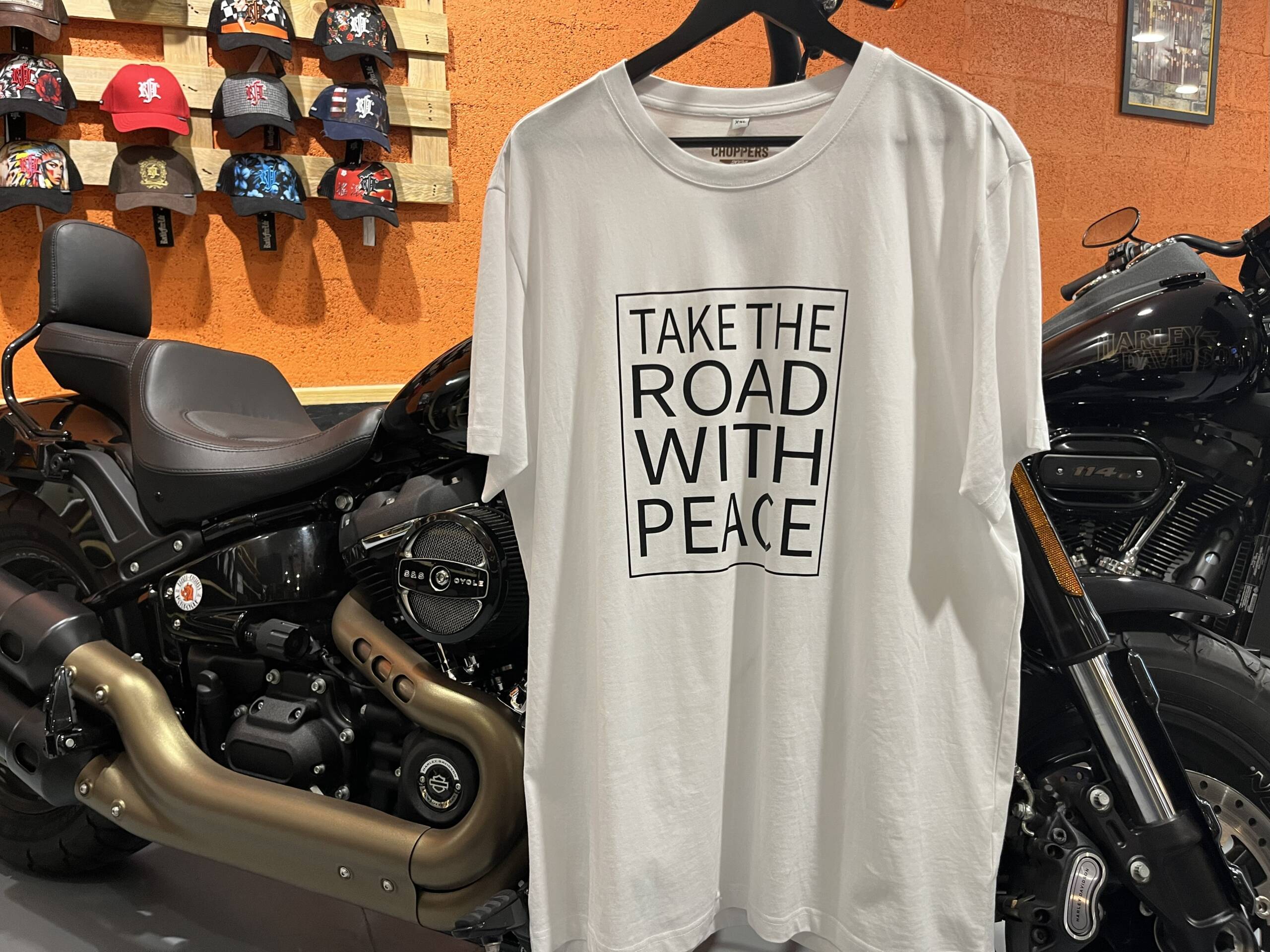 Tee-shirt take the road with peace®, imaginé par Breizh Choppers.