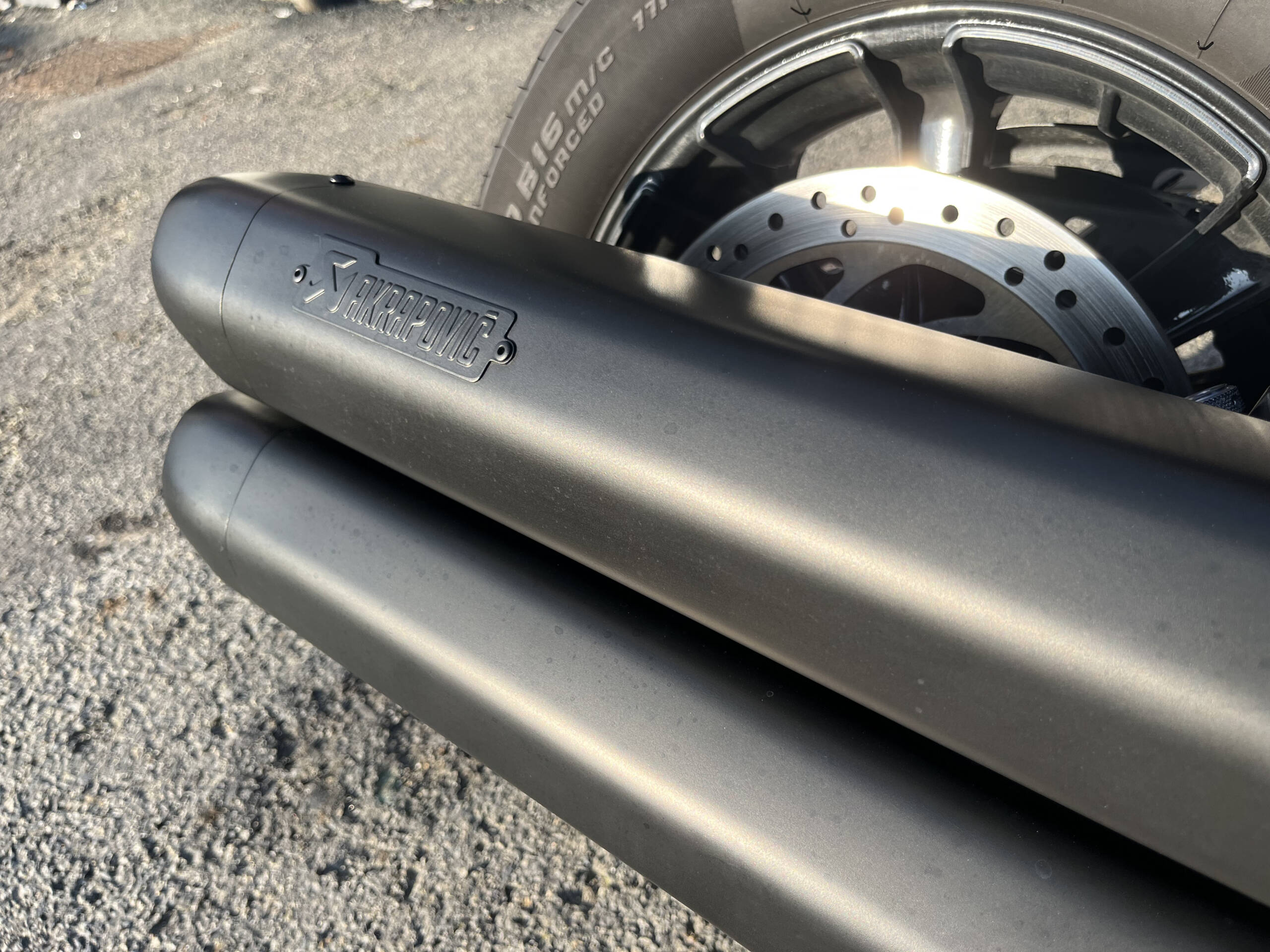 La personnalisation comprend des rétroviseurs en embouts de guidon, qui renforcent la ligne du poste de pilotage, ainsi qu’un silencieux Akrapovic offrant une sonorité riche et distinctive.